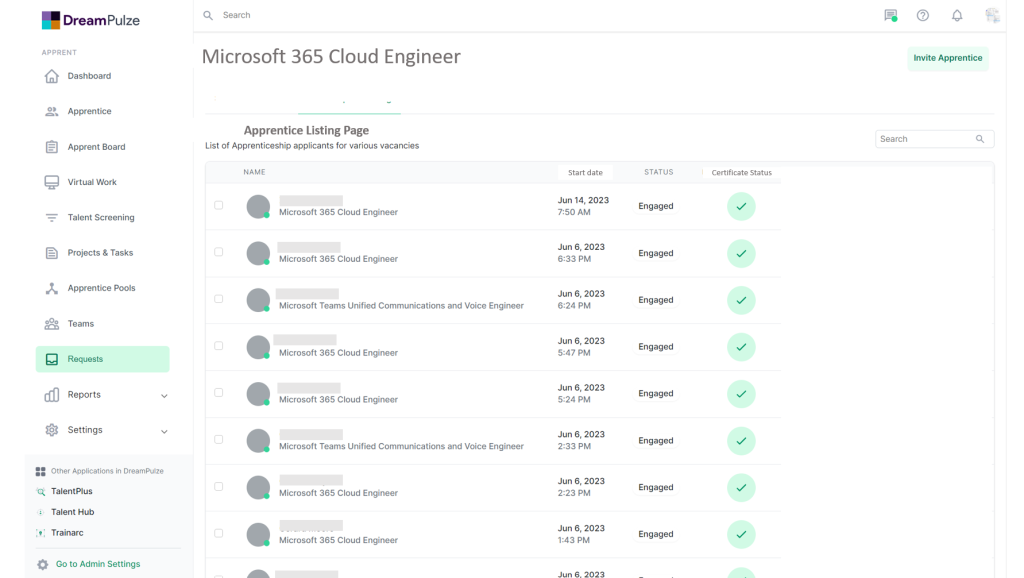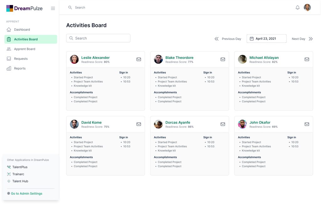 Your DreamPulze Apprentice pool is your most valued Employees in waiting, our built-in reporting system empowers Apprent Managers to track and manage the performance on Apprentices from onboarding to hire.
